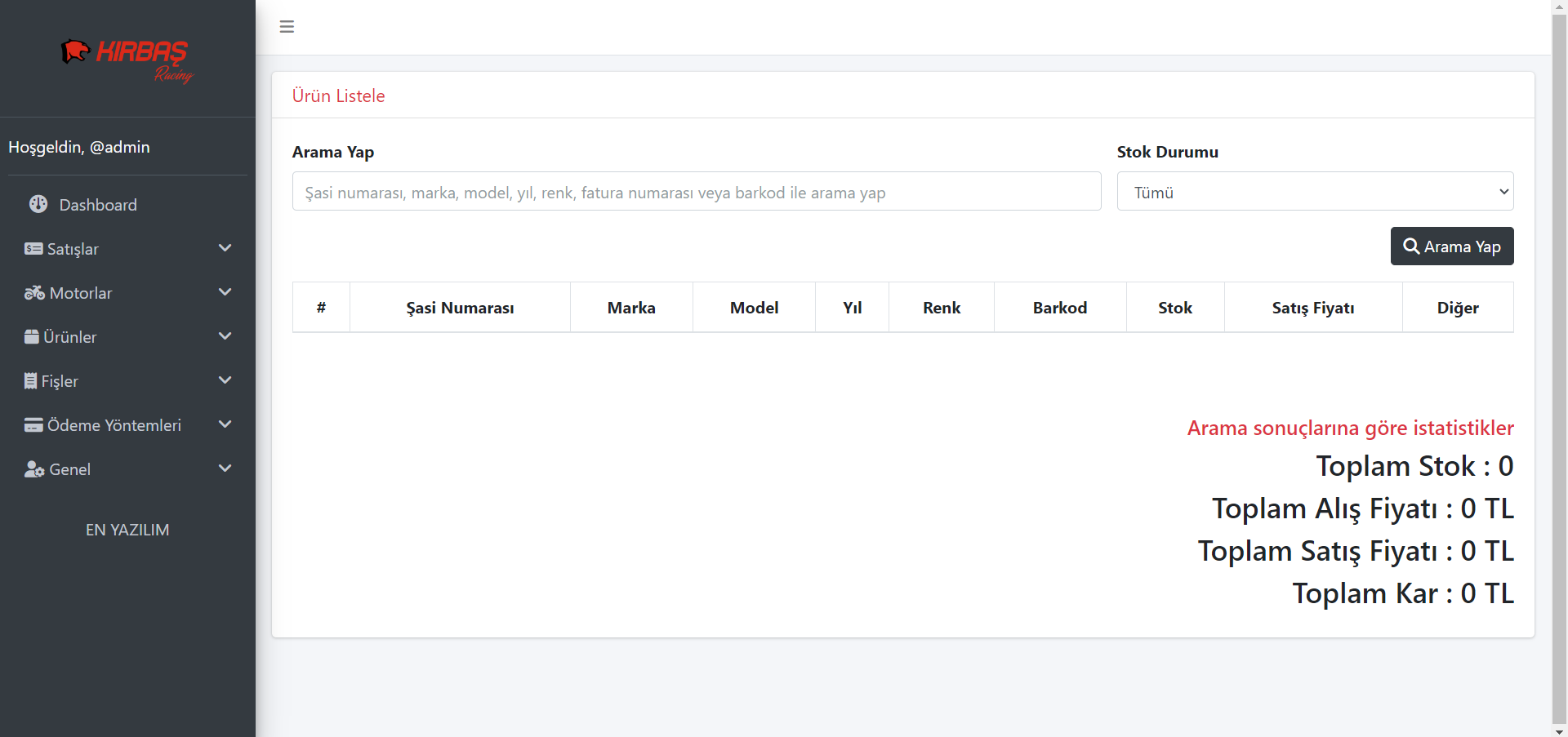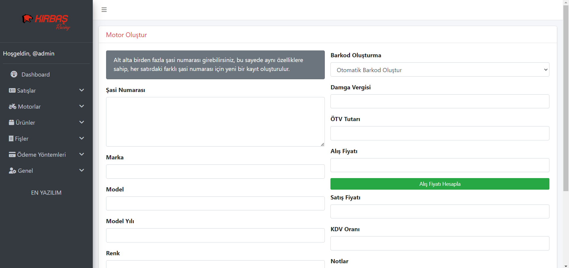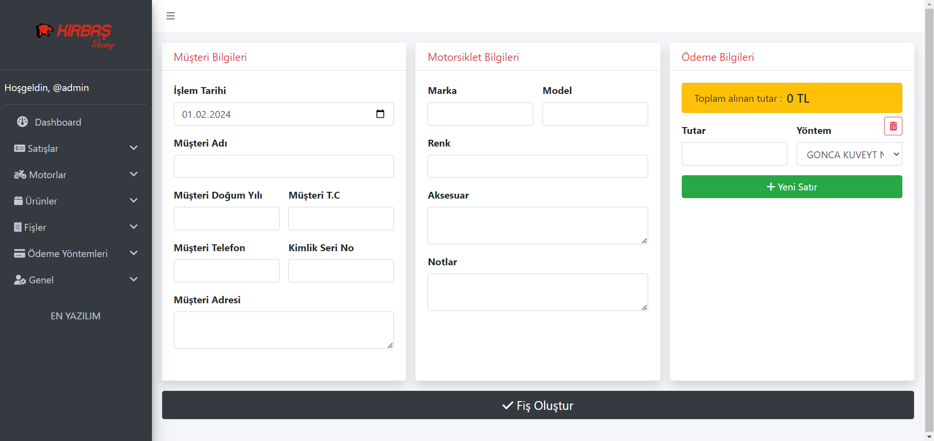 (MOTOKIRBAŞ) Motorsiklet & Aksesuar Satış ve Muhasebe Sistemi