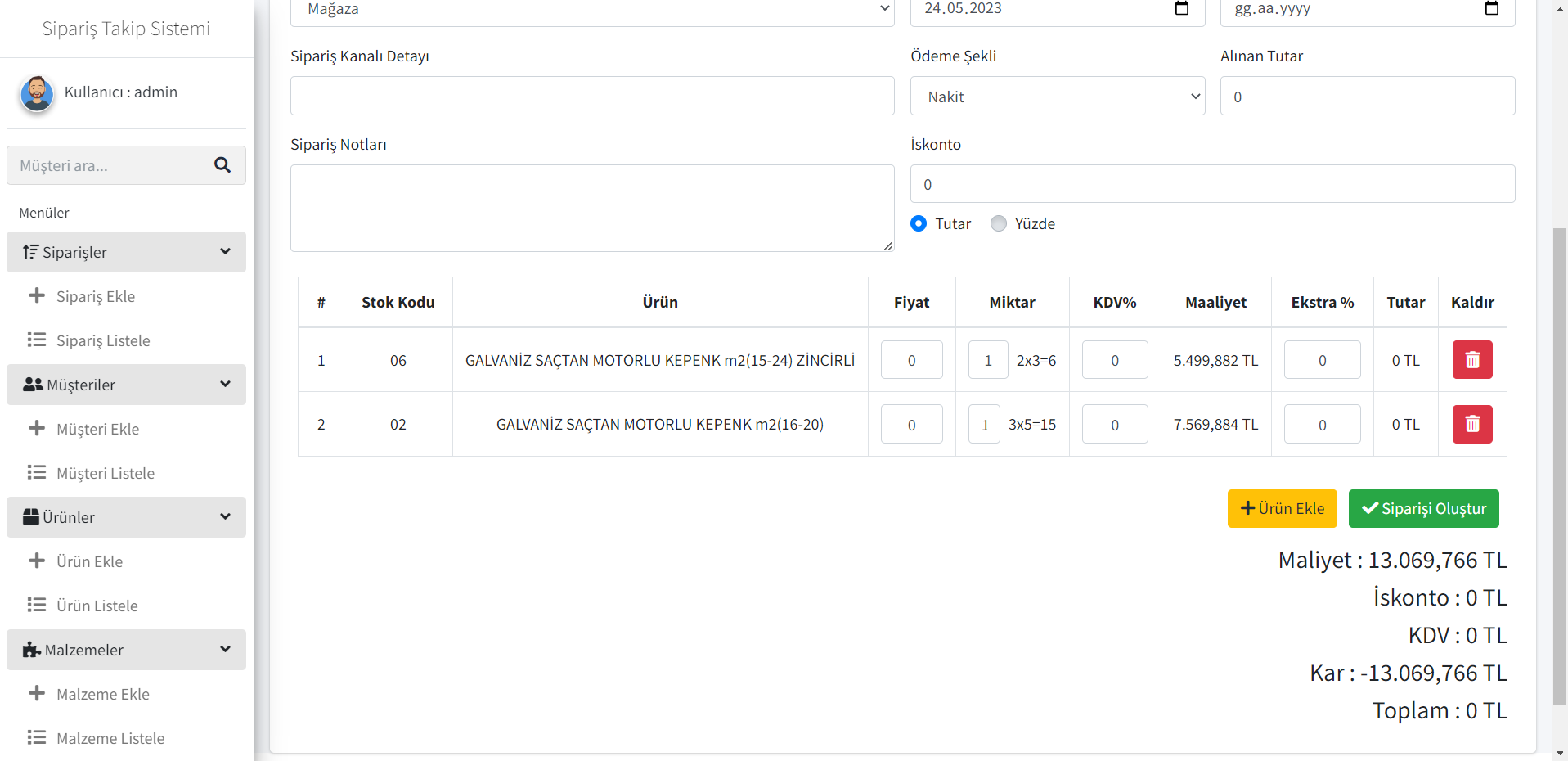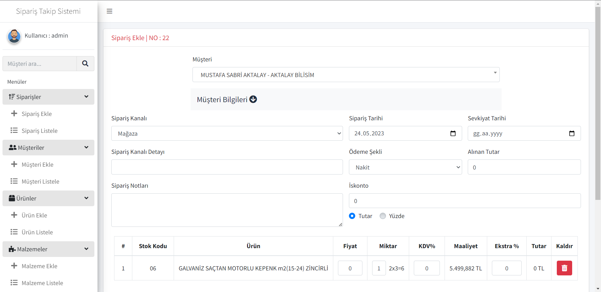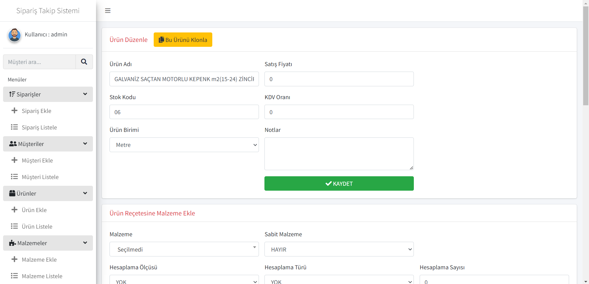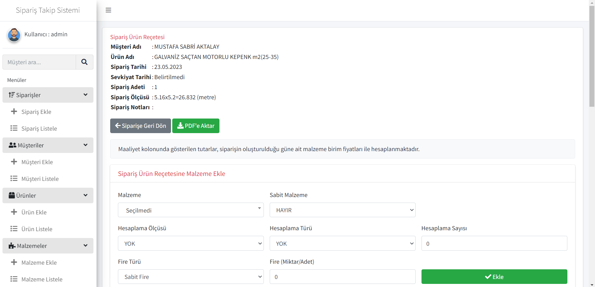 İzmirde faaliyet gösteren "ASKEP" firması için geliştirdiğimiz Üretim, muhasebe ve stok yönetimi yazılımı. ASKEP, otomatik kepenk sistemleri üreten bir firma. Geliştirdiğimiz sistem üzerinden sipariş ölçüleri sisteme girilerek maliyet ve kar marjını hesaplanıyor. Üretimin gerçekleştirilebilmesi için ihtiyaç duyulan malzeme reçetesini çıkartıyor ve çıktı olarak PDF halinde çıktı verebiliyor.