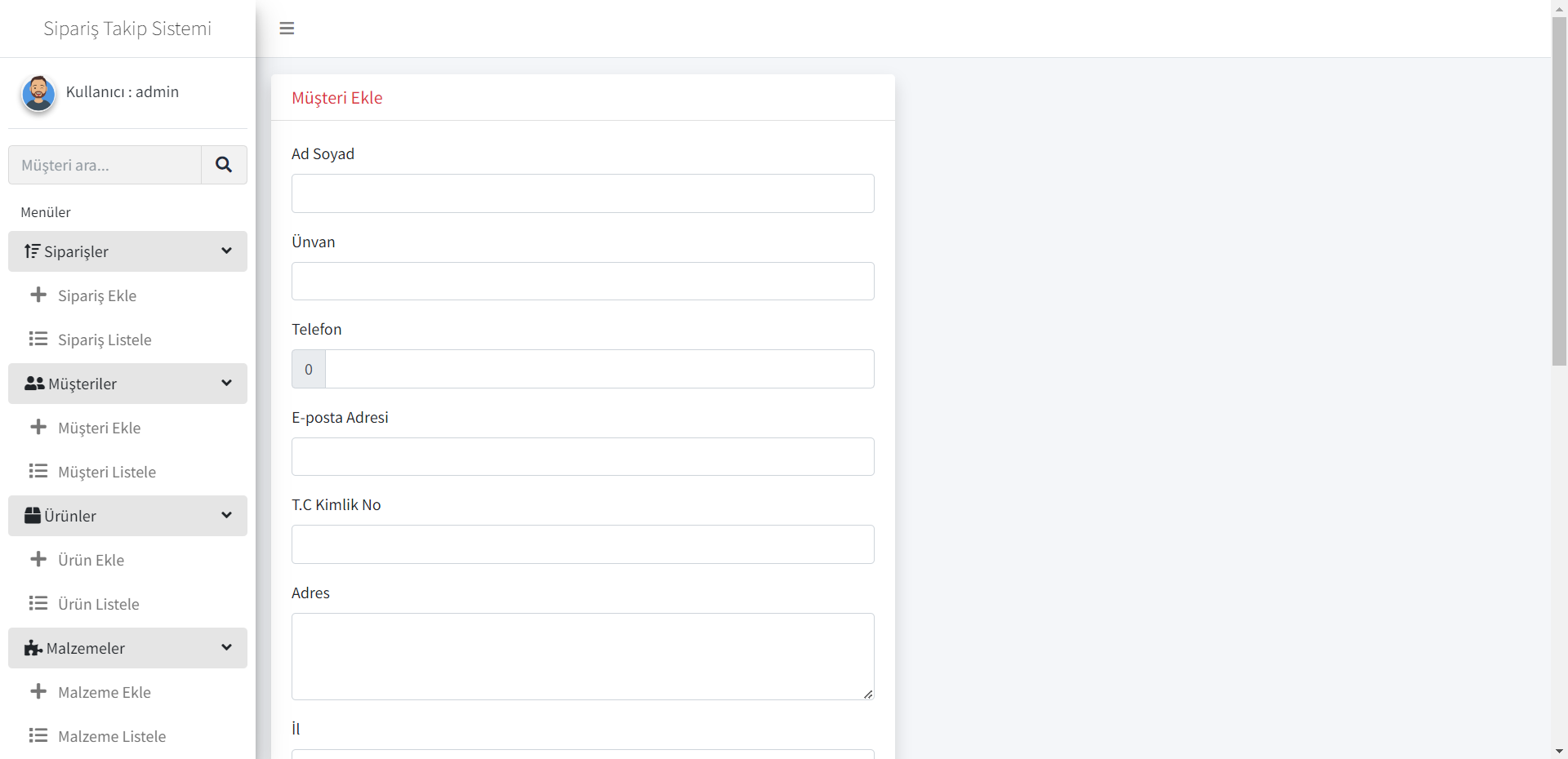 Müşteri modülü