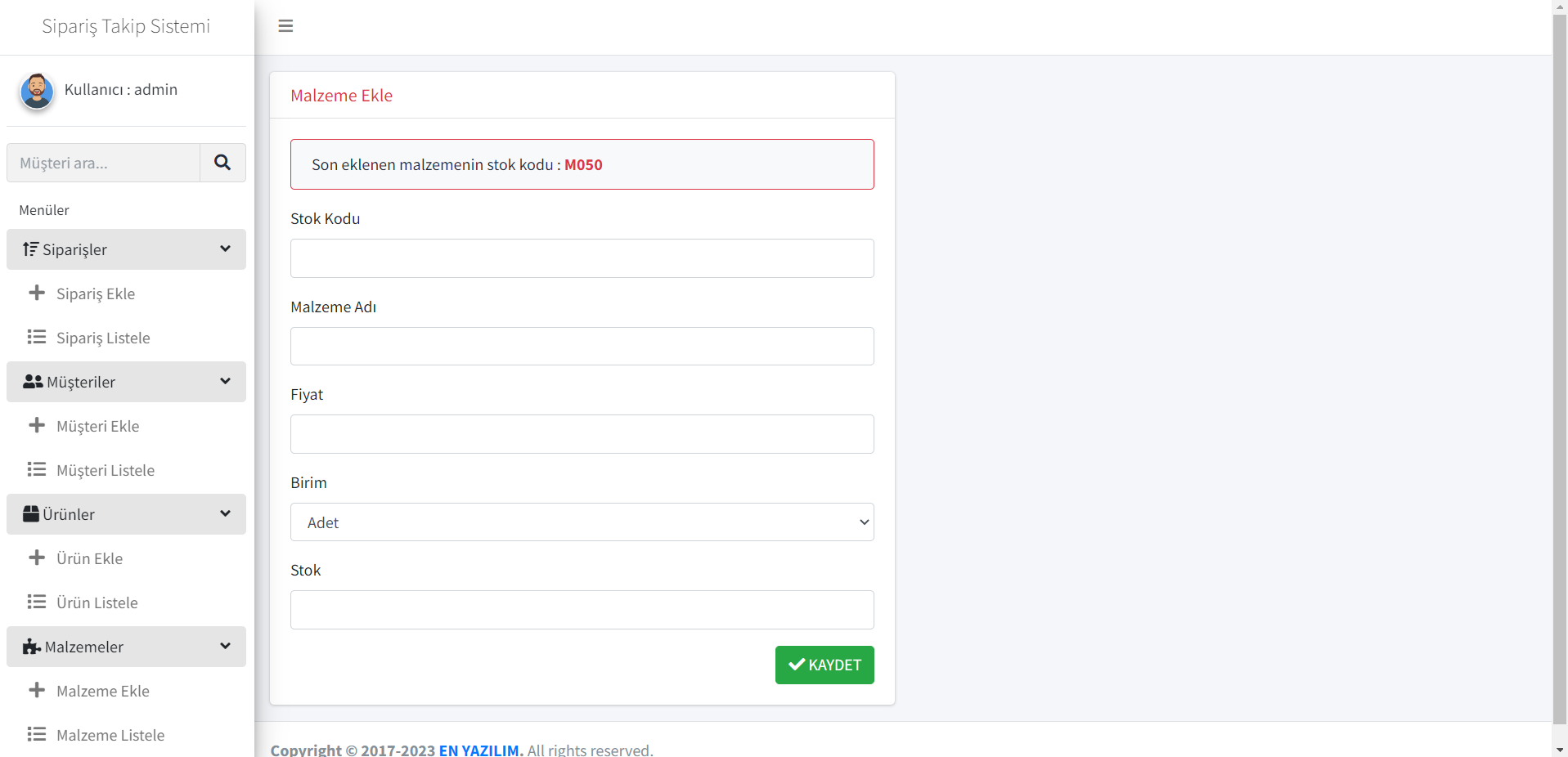 Stok yönetimi modülü
