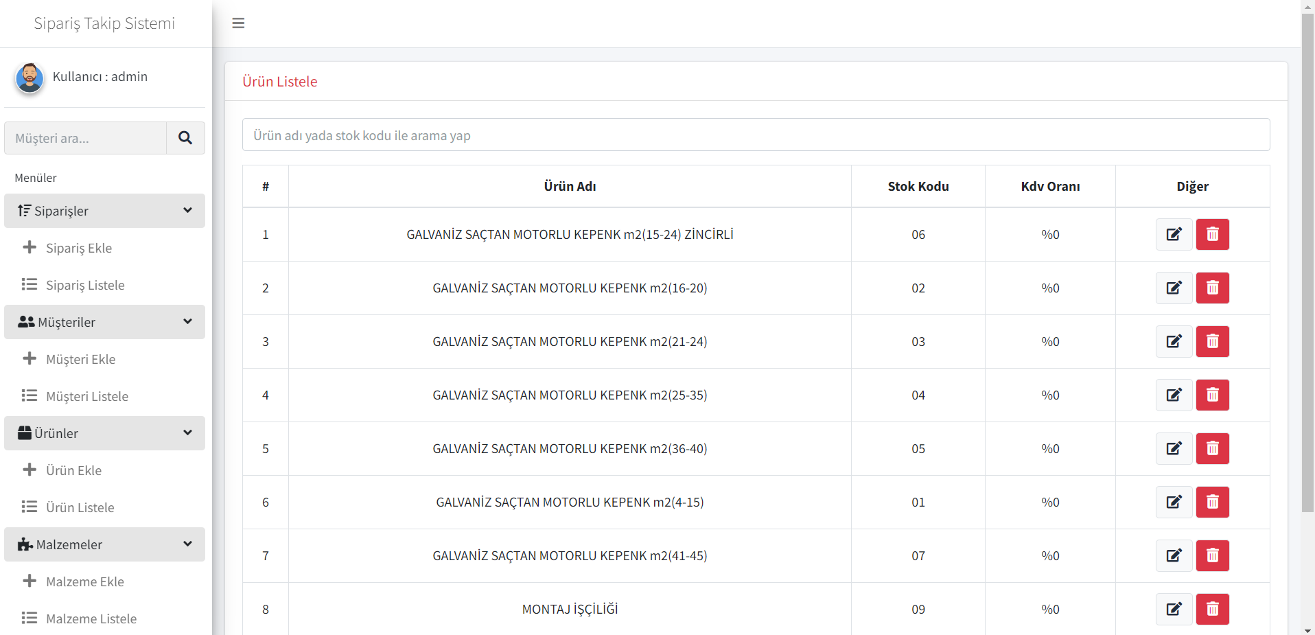 Ürünler modülü