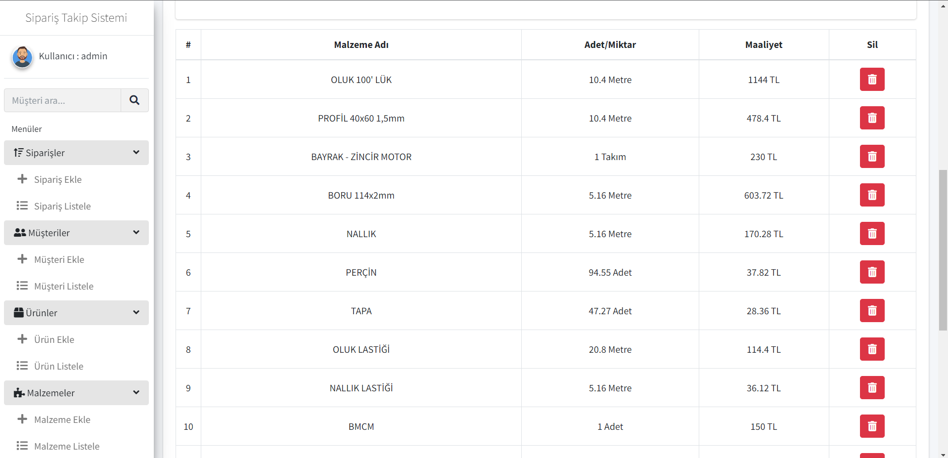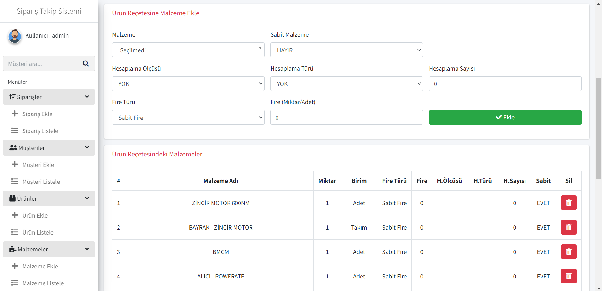 Malzeme modülü